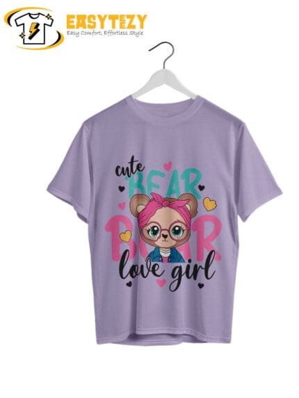 Cute Bear Girl T-Shirt: Stylish Cartoon Animal Tee for Kids | Love & Fun Graphic Apparel