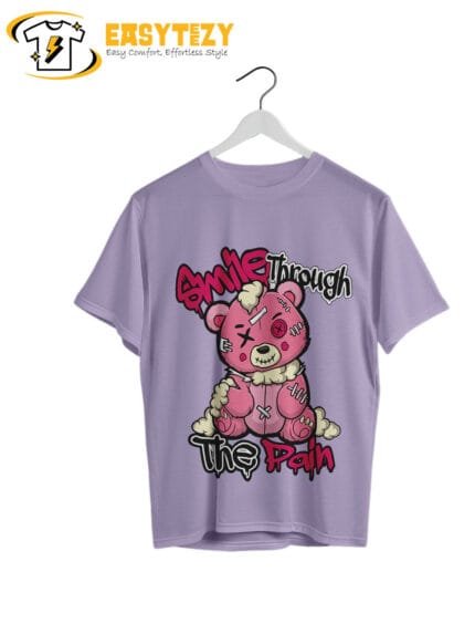 Smile Through the Pain T-Shirt: Edgy Pink Teddy Bear Graphic Tee | Resilient Streetwear Style