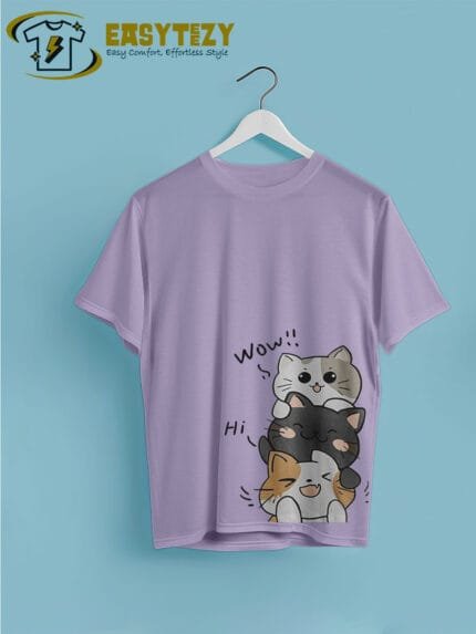 Stacked Cute Cats T-Shirt | Adorable Feline Tower Tee | “Wow!!” & “Hi,” Kitty Graphic